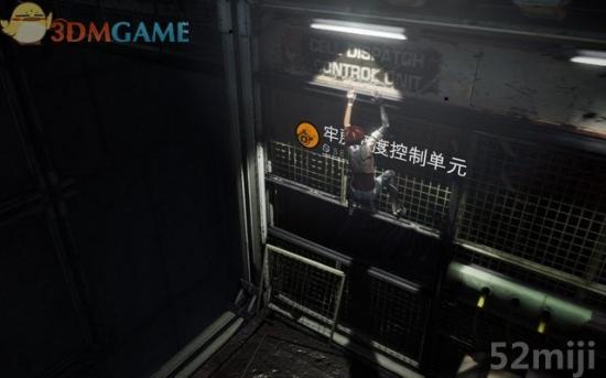 返回,用数据脉冲破坏掉牢房调度控制单元,爬回平台拖开前边的牢房,跑到通道末端,将空中的牢房拖下去,跳到起重机的顶部,能看到左边拜德的牢房。回身将另一间牢房射落,纵身跳到那间牢房的顶部,走到通道末端找到记忆虫子(5/12)。