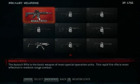 在武器解锁界面按D可以切换显示该武器的各类性能。这些性能比较简单易懂,不加以解释说明了。一般来说,所需经验越多,各分类性能的数值越高;该武器的相对值得推荐