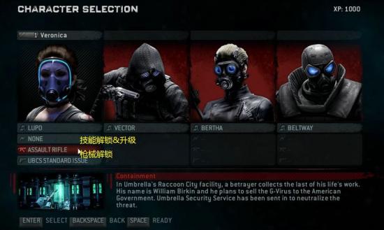 整个游戏中,你会获得一定的经验从而解锁你人物的各类技能并且加以提升,或者解锁新武器进行游戏。