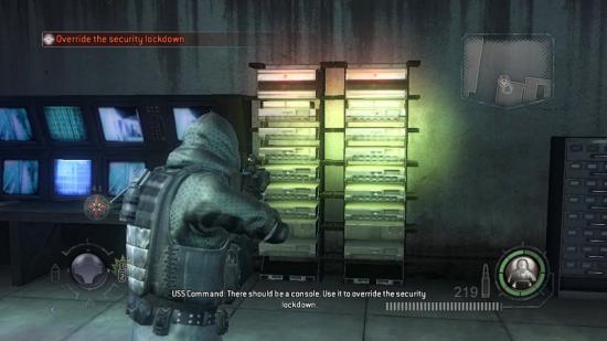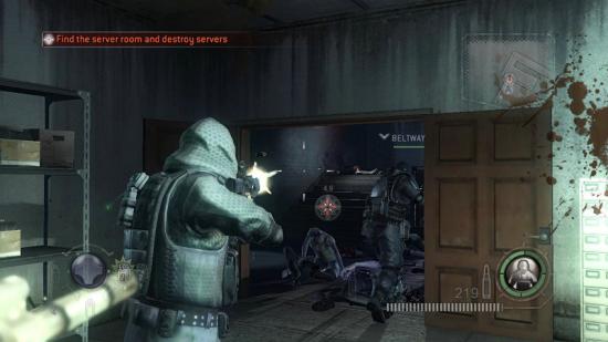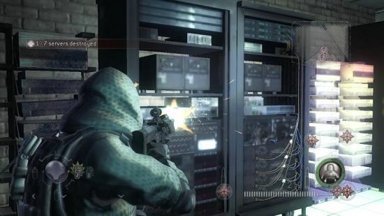 来到服务器中心,射击服务器摧毁所有的资料。然后从右侧的门继续前进