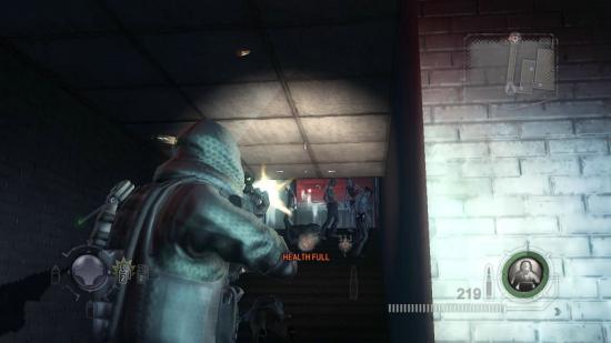 对于一些空间狭小的区域要特别小心,如下图的楼梯间;这些地方你很容易被僵尸缠住,注意不要过于突前。