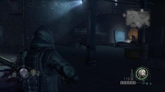 本关你的主要任务是前往CITY HALL的各个资料库销毁所有证据。本关的主要敌人是初级感染僵尸(速度很慢,但是会经常在门后突然出现),以及部署到浣熊市的UBCS,还有最后的舔食者集团。