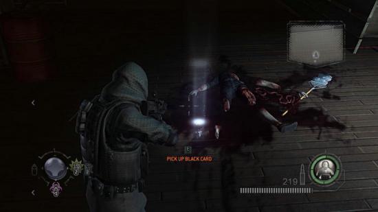 如果你想要快速脱离的话,可迅速冲往场景中心的诡雷布防区,拿取黑卡,然后打开门脱离整个区域