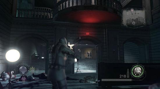 来到大堂演讲厅,这里是最后的BOSS关卡了。疯子NICOLAS放出来大量的舔食者企图干掉安布雷拉对策部队