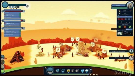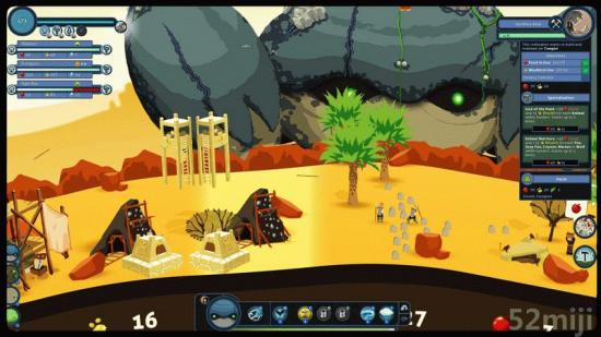 最后介绍一下,左上角圈圈里的数字就是这个星球生活的人的数目,旁边的是时间槽,由于这是沙盒模式所以时间不会减少,然而玩家永远不要忘记一件事——万物始终是会毁灭的,星球也是一样。下方的四个图标,分别可以查看存在的不同国家,人类正在进行的自行建设,战争,以及人类的质疑。