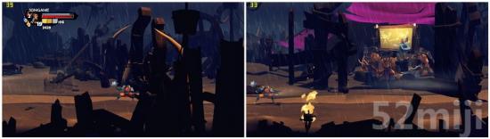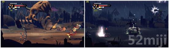 战斗分析:step1,一开始只是一波三叉戟兽人+萨满,注意萨满的粉红冲击波,利用远程蓄力打击即可;step2,来到了沼泽上,大妈说:“你太调皮了,我该让你常常我的打骂式教育!”,这时要留意地面上出现的“白色光圈”注意躲避,因为这就是大妈落雷的位置,当大妈走后,把在场的兽人、食人鱼都宰掉;step3,打破木门后内进城寨,这时会见到一名矿工正在给三叉戟兽人授课,先把矿工给干掉,以防他使用弓箭远程攻击,毕竟他的➹会对我们的英雄产生很大的硬直伤害。