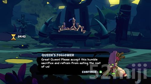 剧情内容:来到平台上,就看见了一帮女王追随者正在执行祭祀,“女王大人,请接受这嗰人类的祭祀品吧!别在吃我们了!”