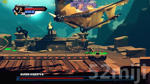 战斗分析:step1,进入地图后会登上一嗰木架吊机,“女王”会在2个缺口里喷洒毒液,当毒液消退之际就会有追随者登场。这里对付杂兵的时间不太长,熟练的话,可以不丢血。