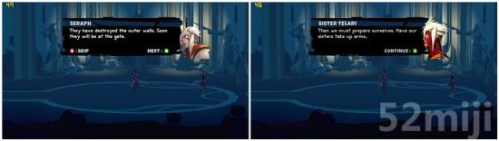 剧情内容:(画面,最终BOSS战场景)炽天使说:“泰拉瑞,有一大批军队正在前往城堡这。”泰拉瑞回答:“军队?看来帝国军真的要来了。”炽天使:“他们已经打破城墙,很快就会攻进来大门前的。”泰拉瑞:“我们必须准备迎战,叫所有姊妹都穿盔戴甲!”(呃,人家都把你家的墙都拆了,你现在才知道?另外,这款游戏是专门教大家踢椚、踹门的……)
