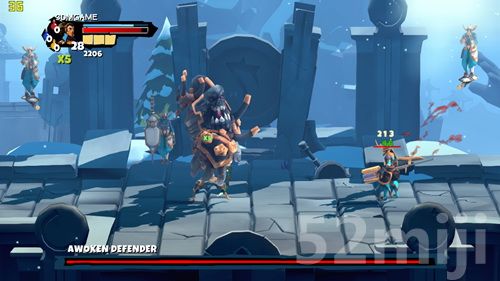 战斗分析:step1,击败BOSS后穿过石桥又来到一嗰平台,上面也有一头惊醒守卫者和一堆守卫者,但是这头守卫者血量较之前的少得多,而且守卫者的数量也不算太多,所以大可不必使用绝技。step2,再次走到厚厚的雪地里,与几头山羊、守卫者对战即可。