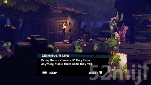 剧情内容:杀到格力默克大妈的跟前时,大妈说道:“你比起其他剩下的人都要坚韧吖,看来你是烧不死吖。”j接着大妈用一招落雷就把玩家所操控的英雄和其他在场的格力默克兽人都给击晕过去了。当然主角嘛,也不会那么容易死掉的!英雄随后片刻就站起来继续追击格力默克大妈。