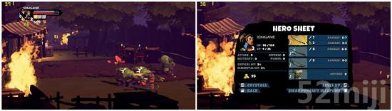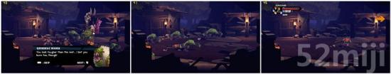 战斗分析:step1,这时英雄解锁了击退技能,即“←”键+“↑”键组合技的强化版。沿路可以走到消耗品附近英雄就能够自动食取,武器的话需要按“←”键拾获,对应的武器更换对应的武器。(如,拾取了劍,就会更换手中的劍;拾取了锤子,就会更换手中的锤子;拾取手中以外的主武器,不会更换劍);step2,来到一倒塌的房屋前,按住方向键再按两次空格键翻跃上屋顶。在屋顶上要面对一波敌人,如果是使用游侠是不可以斜向打击敌人的,所以要引敌人到英雄能够到达的平台上战斗。step3,从屋顶下来时要注意旁边的火篝,要连续按两下空格键翻跃过火墙。这时又要面对格力默克大妈派出的兽人杂兵,这次的敌人相对有些多,所以尽量必要被他们所围困。