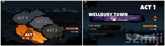 进入游戏后,玩家能够发现一幅大地图分成了四片区域,分别是ACT1、ACT2、ACT3、ACT4,每片区域当中也会划分多嗰场景。