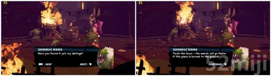 剧情内容:外出后,听见了格力默克大妈说道:“杀戮……又是如此之熟悉,我找回了我童年的感觉。”,她接着说:“你找到了吗,亲爱的?”一名格力默克战士回答到:“还没呐,大妈,这……这需要些时间吖。”格力默克大妈听到之后,勃然大怒:“时间?我才没有时间去消耗!把整个城镇都给我烧了,这会让你们的视线更好、加快搜索速度!”