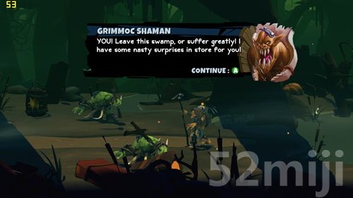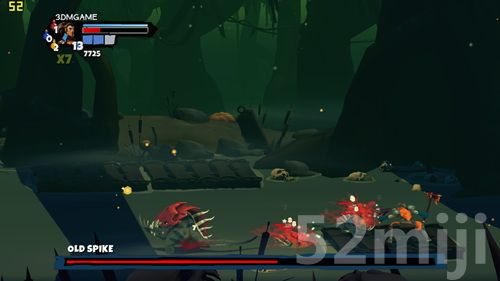 战斗分析:step1,萨满能够让其伙伴起死回生,所以如果要省时间的话先追着萨满打。萨满与兽人的搭配不太难对付,最麻烦的就是上方的火药桶,所以要当心它会爆炸;step2,来到沼泽前,就会有两只兽人潜伏在水中,轻松搞定后往沼泽中部走去,在这里分成两段食人鱼的袭击。尽量使用空对地(即,跳高往下击打的)技能。但是当食人鱼跳高攻击时,它们是进入了无敌状态,所以英雄一旦碰到跳高的食人鱼,都会受到伤害。食人鱼数量比较多,而且攻击分为了跳跃、冲击、潜行,数量一多就难以防备,所以尽量还是使用翻滚