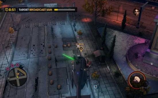 本关开始需要驾驶直升机去干扰信号.不建议近身打.一共有3个放了两个之后需要驾驶直升机低空追一辆媒体车,直到左上进度条满为止.然后会需要去一个废弃建筑屋顶.救播报员.(也不建议近身打)会有女敌人使用高科技.冲过去按F近身弄停杀死即可