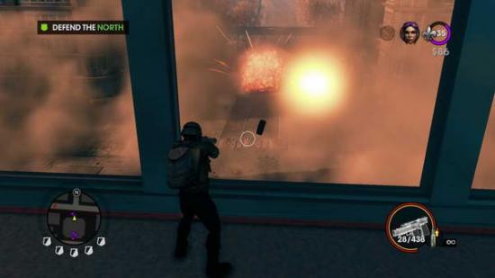 然后需要再次回到楼上,上去后会给予镭射瞄准按住鼠标左键使用,可呼叫火箭攻击.防御几波之后楼上另一边会上来敌人大约5个2个拿盾牌,清理完之后回来另一边(此时会有个敌人出现)按E上楼后去停机坪,过场动画完后需要做抉择(对准将军按E或者对准妹子)因本人选的是给妹子.所以将军会下令轰炸大楼.此时需要到目标点纵身跳下