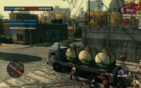 本关开始尽量用给予的新型的聚能声波武器攻击(到最顶端可秒杀僵尸),分别前去3个点把毒气罐打入海中.在打掉第一个之后妹子会叫你去救她别犹豫了冲!,到了那边帮妹子解围之后两人一起前进.(打僵尸尽量先吸引到后面然后聚能一枪可以杀掉很多)到第二个罐子的时候会有小BOSS僵尸最好聚能到顶(大约3发搞定),全部三个搞定后会氧气(估计是)不足需要去指定地点