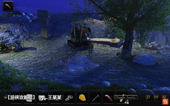 15、进入C区的洞穴,利用扳手把场景右面的高压谁抢头拆下,然后用粉碎的土块和枪头合并,接着把枪头装回去。把高压水枪挂在场景中间的洞上面,最后开动机器。