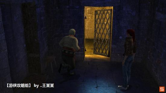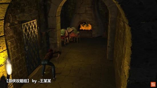 来到壁炉旁边拿起烟灰,利用手中的木块放到牢门地上的凹槽里,利用拨火棍敲开牢门。