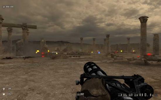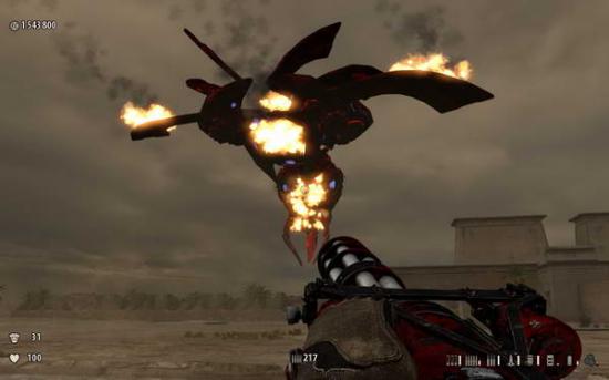 从井中下来正面用火箭筒把BOSS击杀即可.从宝座后面前进通道上也会有骷髅狗埋伏,来到地面后捡起新武器补给准备好防御大量的骷髅狗