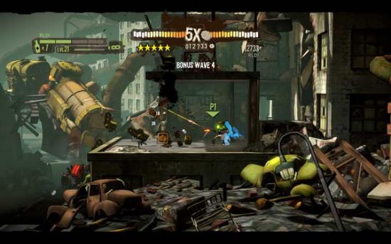 本关开始清理掉一小批杂兵后前进会出现大型蜘蛛机器人绕背后解决前进,上了屋顶之后对面的平台上会有一个火箭机器人下面也会有个火箭机器人统一解决前进,箱子后面会出现一个火箭机器人解决后前方不远平台上还有一个火箭机器人解决从屋上前进