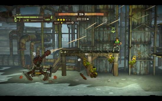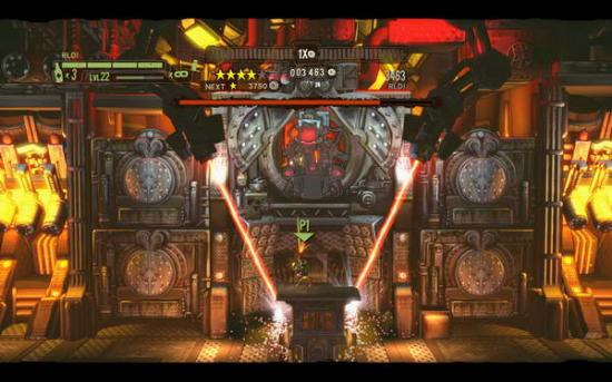 来到楼梯间后跟着楼梯继续往上前进下了楼梯之后会有火箭机器人和新敌人击杀后进入机关房前进,在路上解决一些新敌人和杂兵后来到熔炼处前进(一路上会有飞行机器人和新敌人干扰),来到管道处把墙上的炮台逐个打掉下到最下层再次来到机关房慢慢前进,进入一个房间后按下按钮开始BOSS战.BOSS没有什么特别的攻击技能(刚开始的激光不必躲站在中间的台上不动扫射BOSS即可),只需躲开它操控的台子喷射的火焰扫射它即可(BOSS操控台子是有规律的).