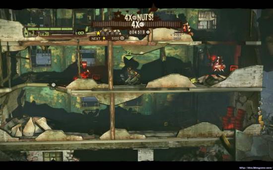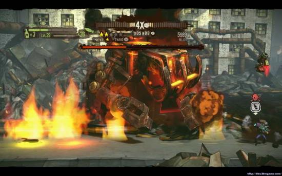 前进到尽头楼房后上二楼会从天上出现自走机枪闪开击杀后从右侧墙壁缺口前进,从楼上逐层下来到地面过了补给点不远就会开始BOSS战