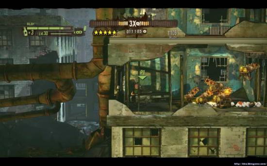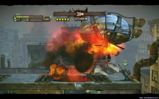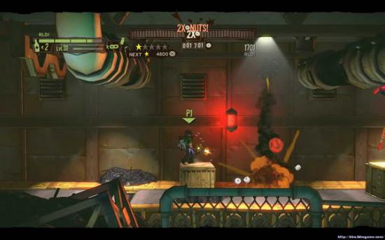 出了隧道之后上来清理掉杂兵后炸开墙壁前进,进入楼层后会出现大量蜘蛛机器人来到二楼从左侧管道清理炮台前进,管道左侧的榴弹机器人攻击较高最好快速解决,到了屋顶之后会来加强版的敌军飞机(会扔定时地雷)