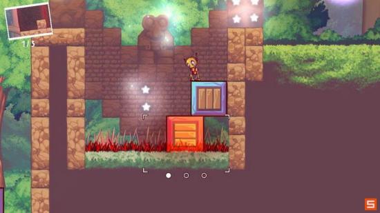最后一关则是技巧关卡。在开启机关之后,将原先的木箱保存携带,然后利用叠罗汉的方式叠加木箱从而让人物处于更高点跳跃