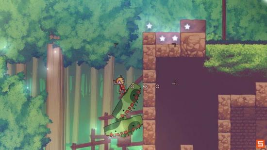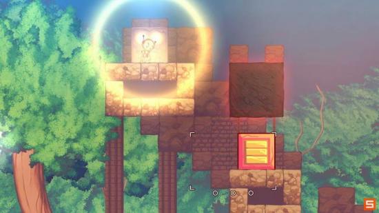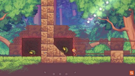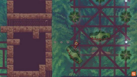 第五分支总体也相当考验微操。这里则是让玩家熟悉一个很重要的道具:弹簧草。该道具可以将机器人弹射到极高的高度,但是无法推移