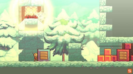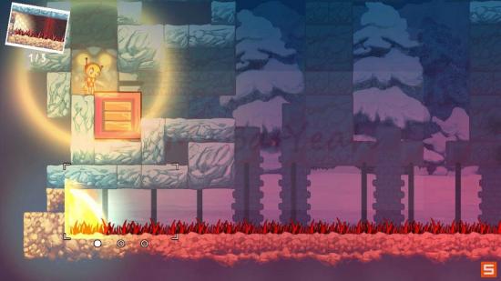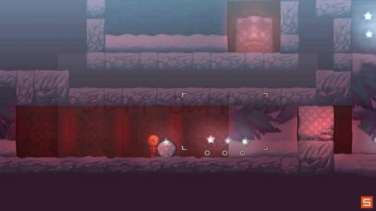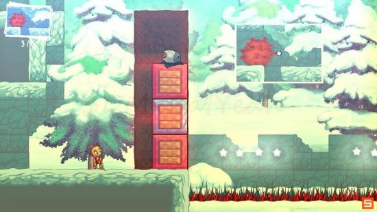 最后一关比较简单,让雪球滚到雪箱从而开启机关,然后沿着右边即可到达终点