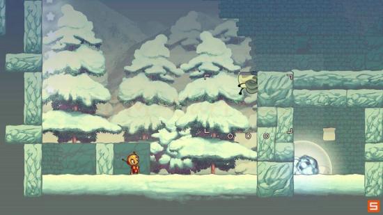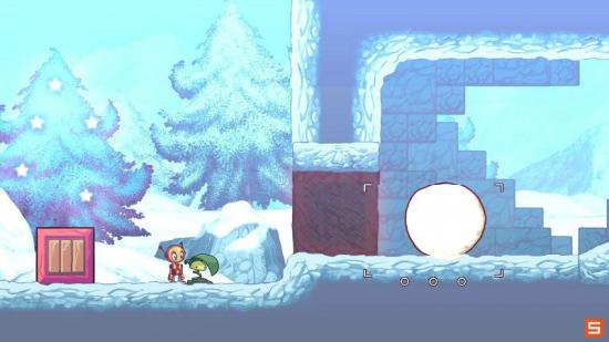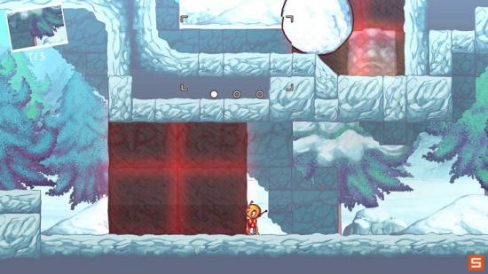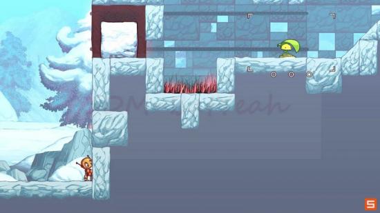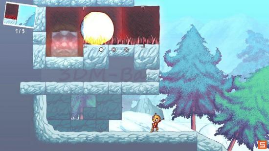 冰雪世界,顾名思义,整个区域自然少不了很多与雪有关的事情。而本作的雪球则是一个相当重要的道具。首先它可以在雪地上滚动从而逐步变大(不能变的太大否则会无法推动)