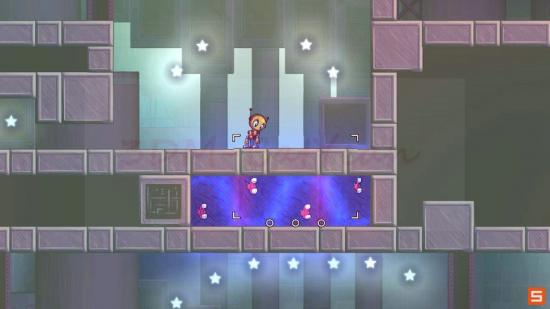 这一关难度不是太大,玩家需要注意的是要合理放置四个磁场的位置。同时注意下面的高台其实是可以跳跃过去的(在磁场的吸引作用下),然后来到对面开启机关从而保存四个磁场