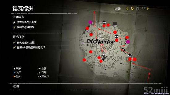 最后这名将军会停下来,把他身旁的可爆物用消音手枪打掉即可(架子旁边的油桶、卡车上的油桶,卡车前面的油桶)【 如图紫色叉叉所示 】