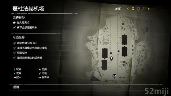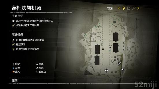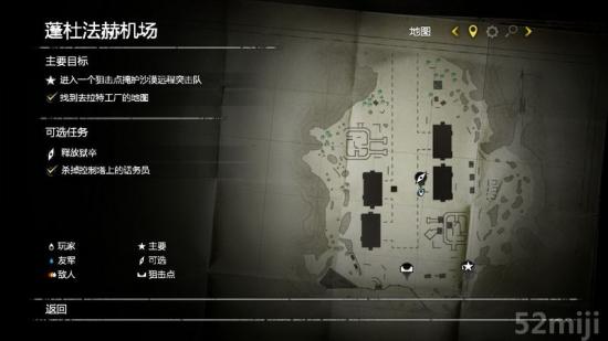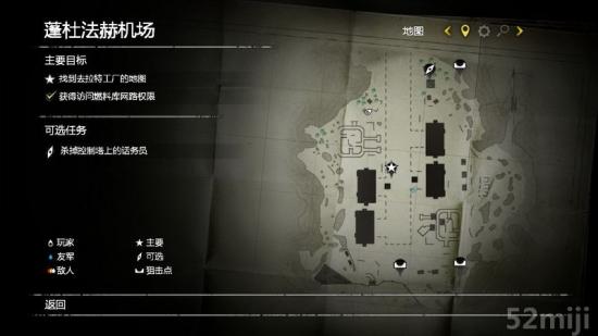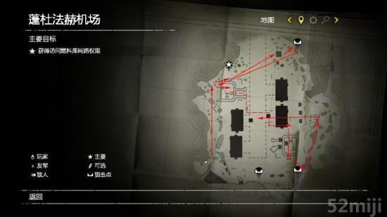 游戏开始后,如图行动路线所示,贴近左边的边缘潜行前进,先去任务提示点获得权限【 主要目标:获得燃料库的权限 】。
