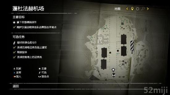 因为之前有埋雷,因为敌方战车位置不会在地图上显示,只能从游戏中知道战车的大概位置,所以能干掉几辆就取决于你之前埋雷的位置,然后按如图所示的行动路线往北边前进,,附近也就几个巡逻兵,安全起见还是潜行比较好,到达三个帐篷的位置触发【 次要目标:摧毁弹药库 】