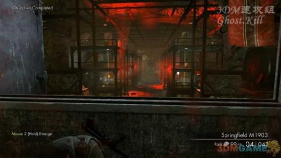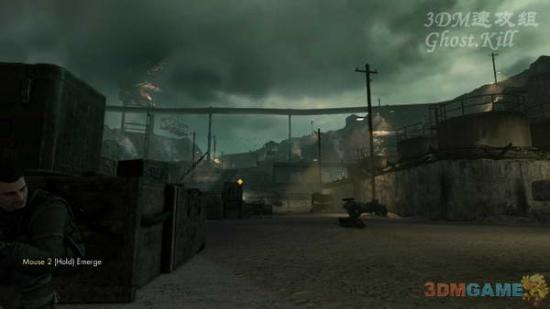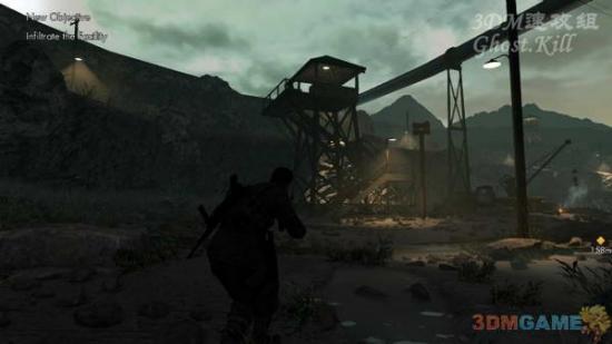 安好后直接跳下来,然后趴到地上狙击右侧的通道,还是需要机械声掩盖枪声,一开始可以见到两个敌人,一个近一个远,干掉之后会再来一个,同样干掉后去下一个目标点按炸药,最后的目标点直接杀过去吧,没什么可以掩盖枪声的东西了。