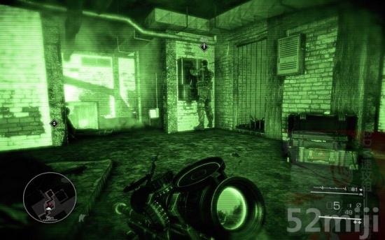 4.敌人察觉后逃离查库,可以选择消灭敌人或者躲避,打开夜视仪V。