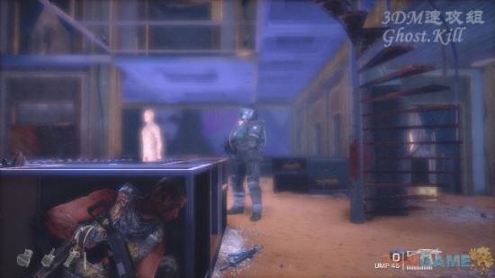 继续前进可以捡到沙鹰子弹,干掉从直升机上下来的四个敌人,捡他们的武器进入商场。上楼发现队友被劫持,干掉劫持他的敌人然后和队友一起清场。
