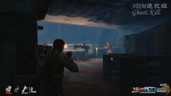 遇到敌人机枪手后两个队友负责吸引火力,玩家从一侧绕过去把他干掉,然后使用机枪对付剩下的敌人,最后打碎右侧的玻璃让沙子全部流进来,从这出去过关。