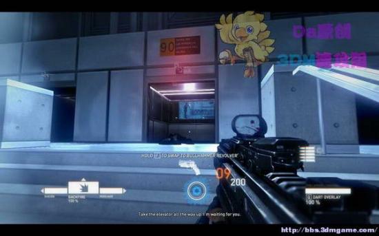 歼灭所有敌人,就可以从上图的亮灯的电梯往上走