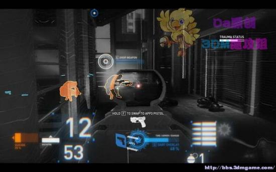 会出更多的分身,可以使用榴弹很效率清光那些分身!没弹药的情况下可以对着两边在飞的小机器按住E,会掉一把枪下来