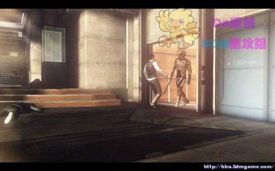 从飞船下落到一座建筑物的天台,进入附近的门,就界面就会提示出一个蓝色小图标