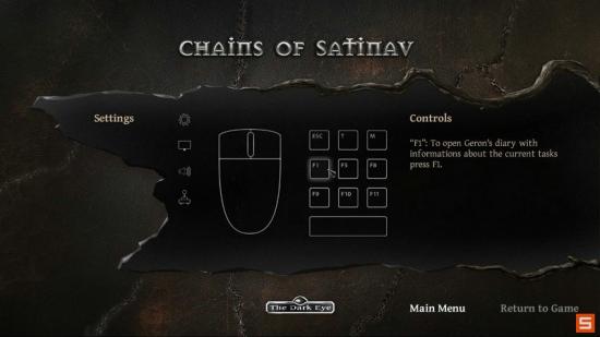下边栏最左边的两个代表GERON可使用的魔法技能。魔法技能可破坏某些场景的特殊建筑物。如初识的魔法技能可以破坏一些瓶罐之类的物品。中间的则是物品栏,点击物品与相关的物品互动进行推进整个游戏进程。一般来说,每个物品与某物件可互动的情形下,该图标会显示出亮色