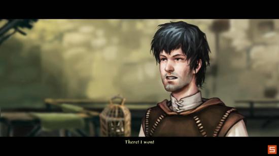 回到GERON和他师傅GWITTING的捕鸟人之屋,GWITTING责怪GERON为何把CAGE给弄坏了,而且拒绝帮助GERON继续他的挑战。对话完毕,拿走二层后部的WALKING CANE