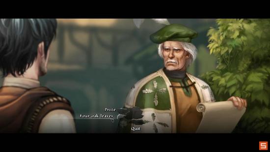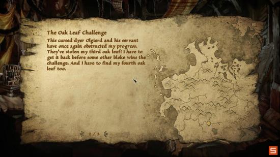 原来Geron正在进行一个名为收集OAK LEAF的挑战任务。而开幕的场景OLEIGRD和NOSTRAINS教训GERON的场景正是为了抢夺他手里持有的一个OAK LEAF
