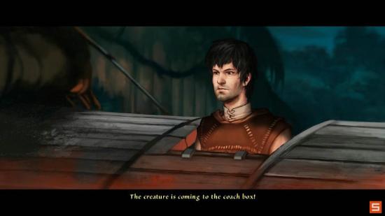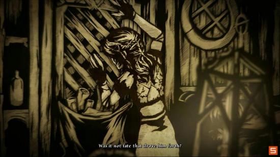 然而两人刚进马车被多久,就被外面的声音惊动。GARON打开车室的前门;发现两个未知的生物居然突然出现在盘问ISADA附近是否还有其他人。而ISADA在惊吓之余并没有说出GARON和NURI的下落。两个怪物不久后就失去耐心残忍的杀害了ISADA