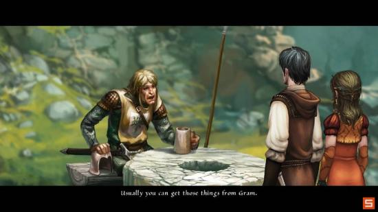 但是他并不是太清楚RED LAKE和那里的精灵学者的情报,告知GARON可以去询问一边的矮人商店GRAM。但是这个懒人却半天不搭理GARON