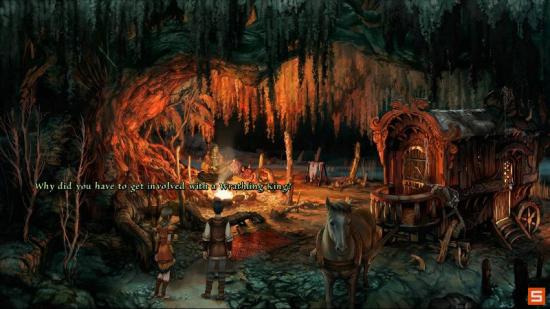 GARON主动上前对话,并且坦白了自己的目的和想法。(这里的对话如何选择都不影响后续剧情)。陌生女人介绍自己叫ISADA,是一名女巫,原本是打算参加A城堡王室庆典表演的。GARON得知后赶紧劝说CARON说现在城内一片混乱,对于女巫之类的魔法人士正在大肆屠杀。ISADA相信了GARON的话,但是表示自己的马车其中一个车轮已经损坏无法前行,只好在这里露营。GARON请求CARON用马车带着他们继续往北部前进,以求安全,并且答应修好车轮